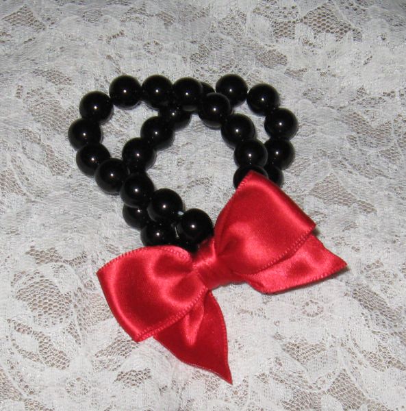 Descriere: Bratara dubla din margele negre din petre naturale semipretioase (onix) si  funda rosie din saten. Bratara este elastica si prin urmare ajustabila! Se poate reface la cerere!