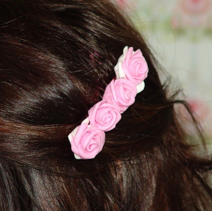 Descriere: Pieptan roz, usor transparent decorat cu patru trandafiri mici (doi roz si doi roz cu alb). Un accesoriu fermecator si simplu de dimensiuni mici care aduce un plus de feminitate oricarui outfit, dimensiune: 6,7/4,5 cm!