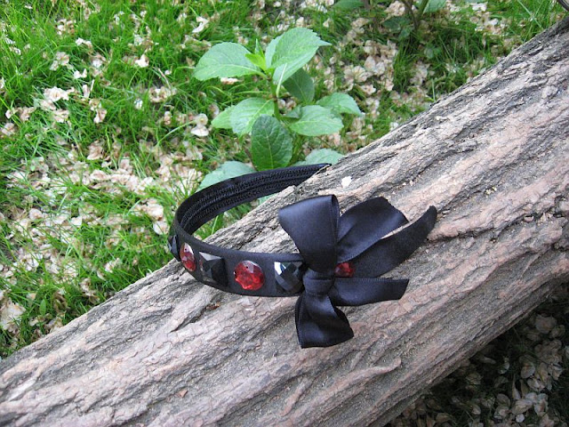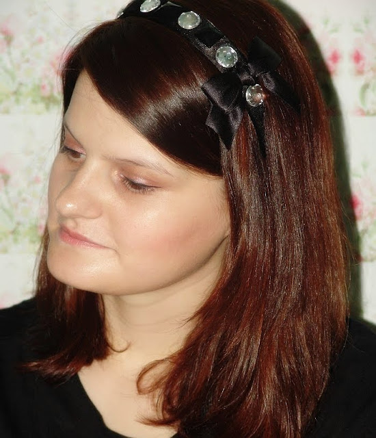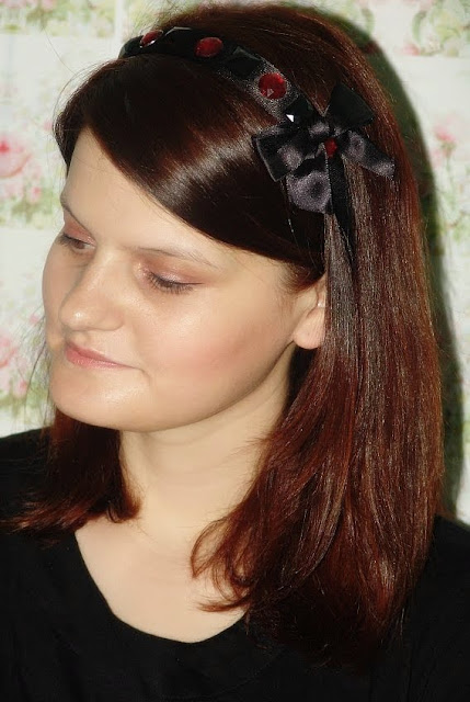 Descriere: Bentita lata din saten cu cristale rotunde rosu inchis, cristale patrate si o funda neagra din saten inspirata de personajul Jenny Humphrey din Gossip Girl:).
