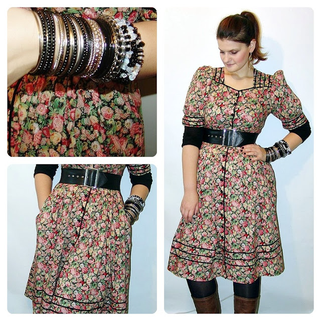 I’m wearing: dress, bag – vintage, boots, belt, earrings, – random brand, bracelets – no name brands + made by me, trench coat – Burberry, scarf – from my grandmother.