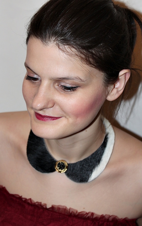Here you have my most recent handmade designs - some adorable leather collars. I have many more coming soon. This beautiful Peter Pan collar is made out of black and white fur and decorated with a special vintage style gold brooch and can be worn over your favorite shirt, blouse, sweater or dress – it gives an instant whimsical and special feel to any outfit. In case you want to buy one but you don't live in Romania, email me and I can put them in my Etsy Store for you to purchase.