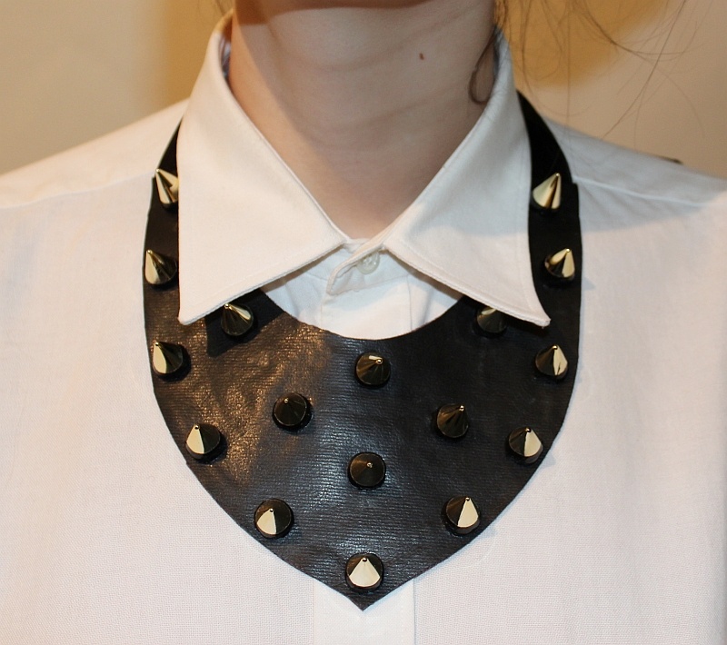 Colier statement Alice&Sara din piele cu tinte - 85 lei