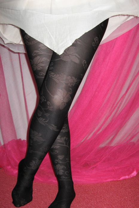 Ciorapi grosi (80 den) negrii cu modele florale - 12 RON